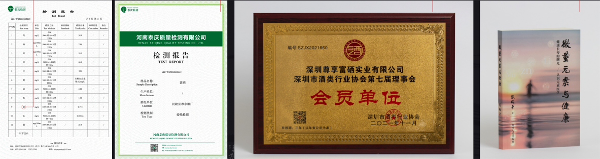 尊享酒业多次获得中国微量元素与健康科学创始人朱梅年教 授的亲临指导。作为中华富硒的开发者,在有80%森林覆盖率的绿色环境中,尊享酒业以糯米、黄精、枸杞等为主要原料,取深山清纯山泉水,凭借独特秀丽无污染的天然环境,采用草曲、纯手工精心酿制,经地窖储存发酵而成。尊享霖溪谷系列酒,产品经过质量技术监督部门检验,所有指标全部合格,尊享酒业以中国传统文化为根基,以不可复制的地域及原料为依托,以符合现代人的健康理念和消费观念为要素,全方位重新规划酒业全系产品,全新包装设计,线上线下统一规划营销模式。在尊享酒业人的努力下,必将霖溪谷系列富硒酒推向更广阔的市场。